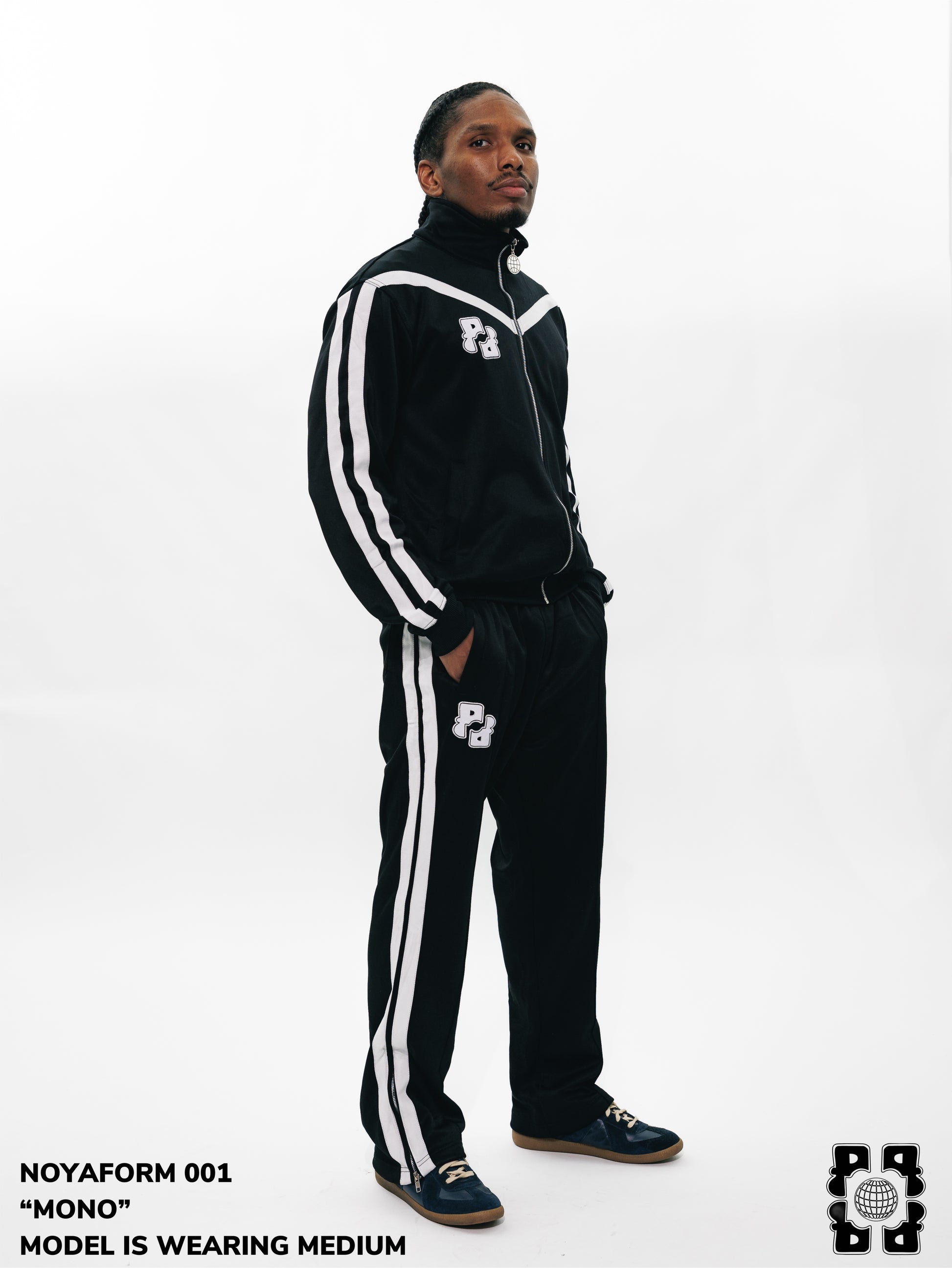The "Monochrome" Tracksuit. The first official installment of the #NOYAFORM collection. 100% Polyester. Fit is slightly bigger on a woman.